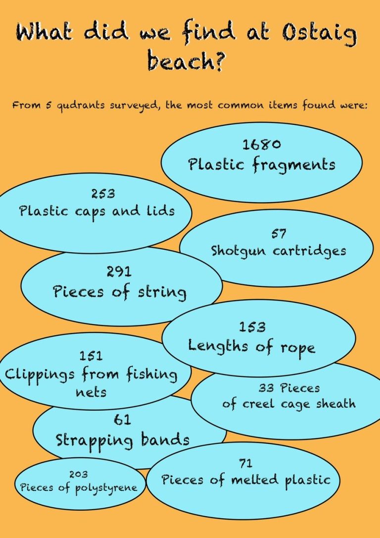 The survey results contribute data into both the SIF/Marine Conservation Society surveys and to Loughborough University’s ’50 Years of Litter on Skye’ academic project that aims to help inform government policy on the marine litter problem.