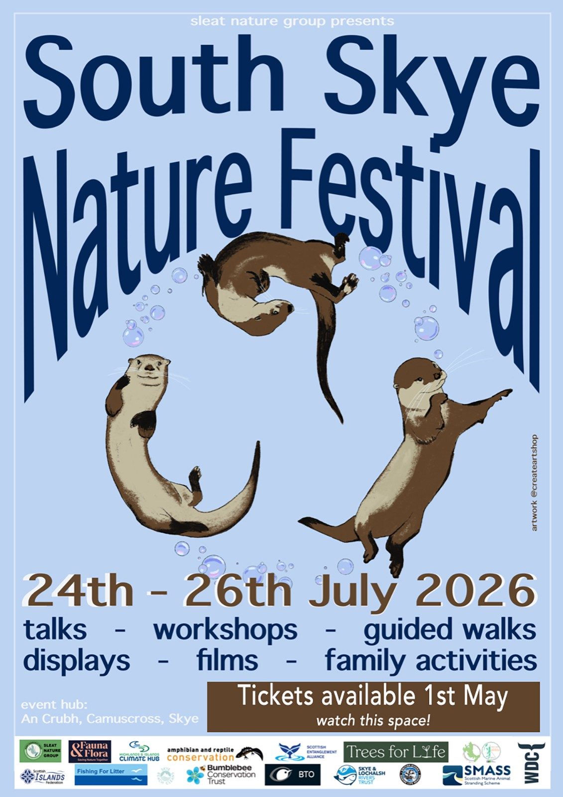 Drop in to listen to our expert speakers celebrating the amazing birds of Skye, or the sounds of Skye’s nature. How about learning about species re-introductions in the Highlands, or the role of biodiversity, or wonders of the secretive corncrake! Oh and yes, we’ll have an evening film screening with Q&A too.